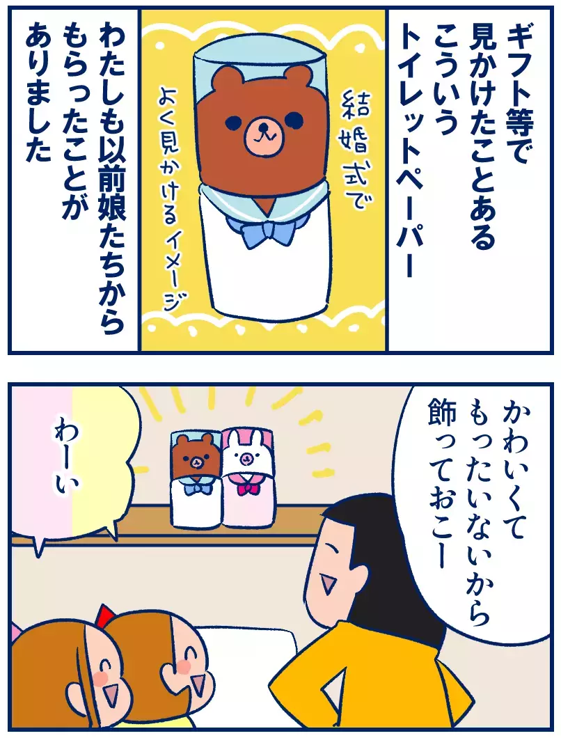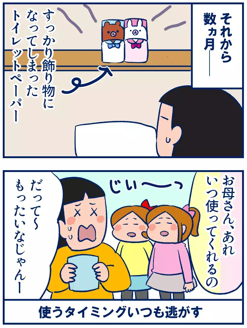 頂き物のかわいい「柄トイレットペーパー」をおろすタイミングがわからない【双子を授かっちゃいましたヨ☆ 第314話】