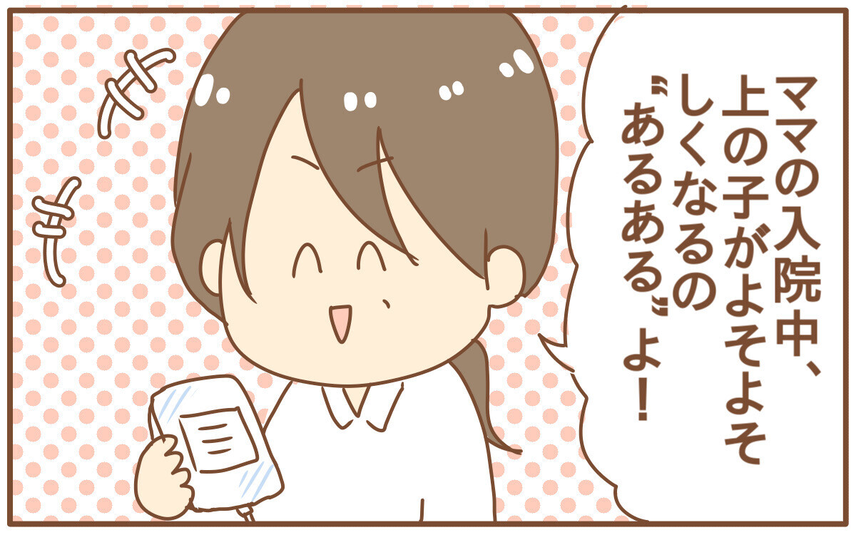 ママが入院していて甘えちゃいけないと思って我慢する子、病院の雰囲気が怖い子など、ママ入院中によそよそしくなる子もいるそうです。