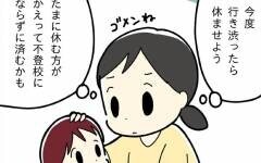カウンセリングで自分だけが焦っていたのだと気づいた主人公(母)は、今度行き渋りがあったら休ませようと思うが、それ以降長女ゆいの行き渋りはなくなる。どうやらゆいはこの件で、「親に言ってもムダ」と思ったようで…。