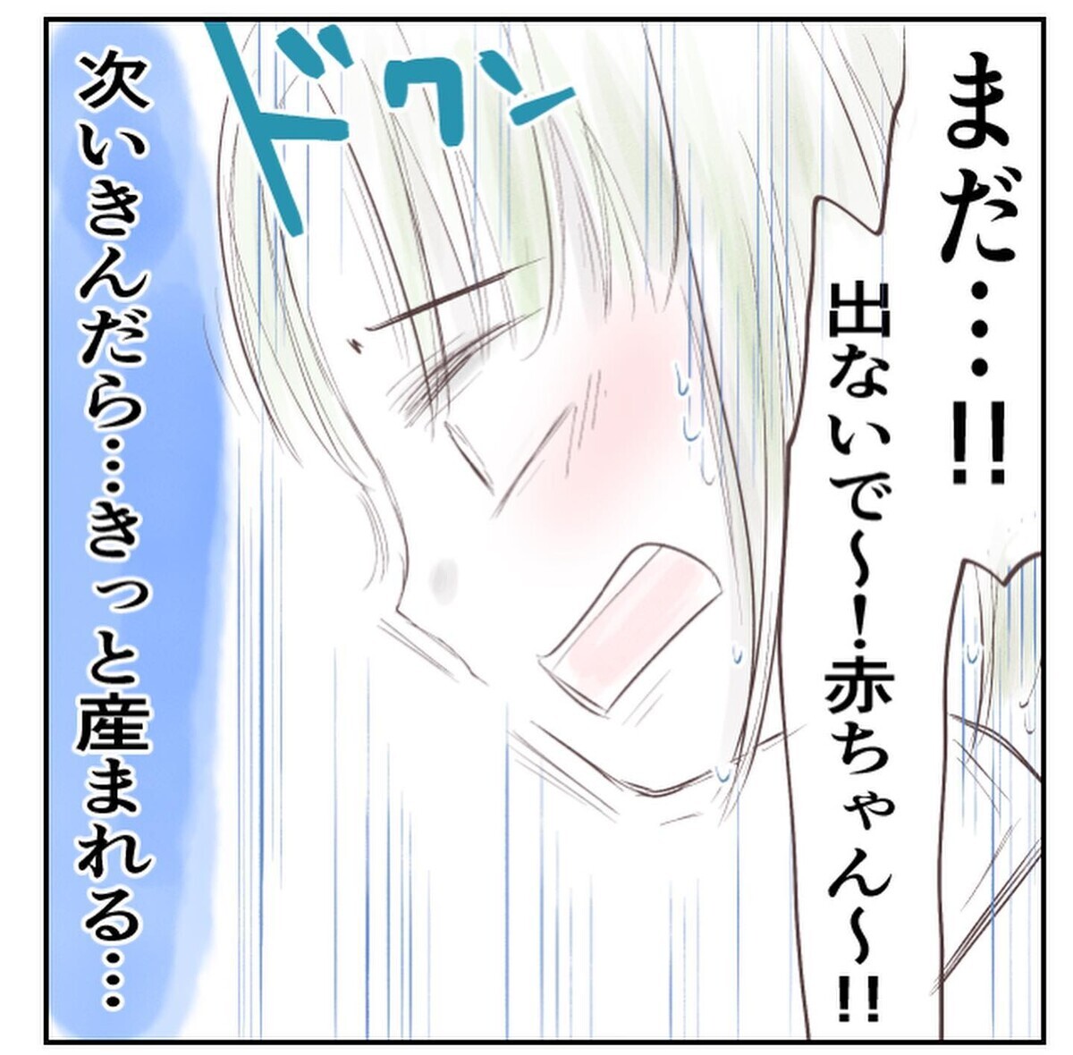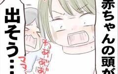陣痛タクシーが来る前に準備しようとしたところ破水。さらに強烈な痛みが襲ってきて、思わず叫んでしまう。すると1歳息子も異変を感じ、泣き出す。さらには赤ちゃんの頭が出てくる感じがして…!?