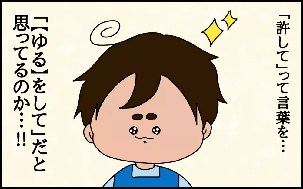 この「許す」という日本語を、フリッツ君は「"ゆる"をする」という言葉だと勘違いしていたことが発覚しました(笑)。