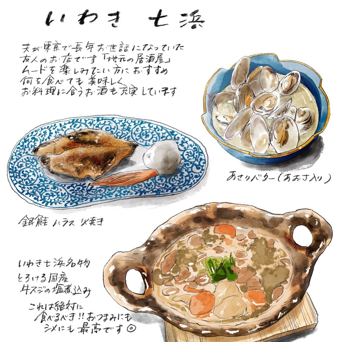 その日の夜は夫がお世話になっていた友人のお店「いわき七浜」にて夕食を。