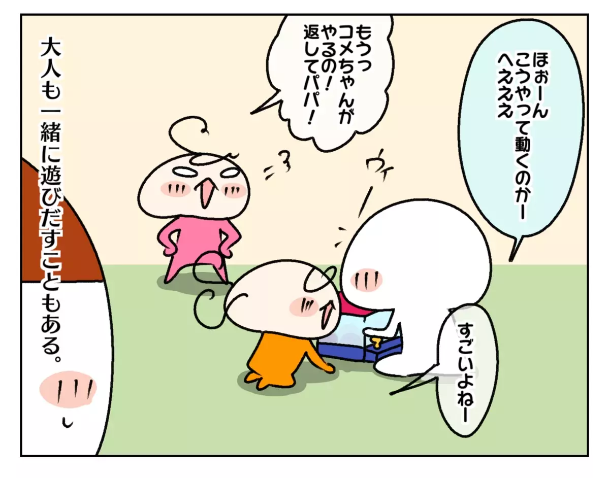 楽しそうに遊ぶ姉妹! 子どもの新しいおもちゃが気になって…!?【ムスメちゃんとオコメちゃん 第241話】