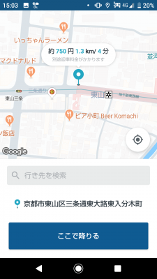実際にタクシーを呼ぶ時は、だいたい今いる場所が出てくるので、来てほしい場所を指定します。