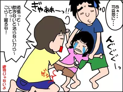夫と協力し押さえつけて、スポイトを使って飲ませていました。