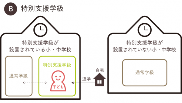 特別支援学級へ通学する場合は、籍は特別支援学級に置きます。そして、体育や生活、道徳、課外活動をはじめ、一部の授業を通常学級の子どもと一緒に受けることが通例です。