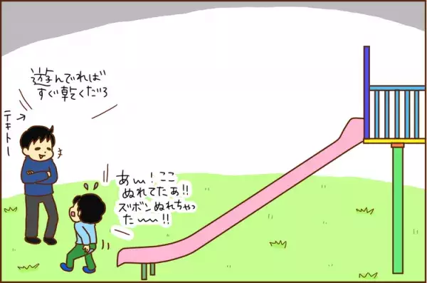 夫が小2と幼稚園年長の息子の3人で公園に行った日。