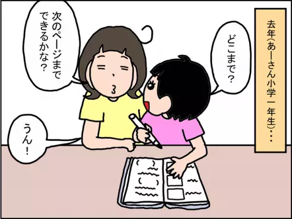 不安いっぱいで挑んだ一年生の夏休みは、私が娘の横にぴったりとくっつき、どれをやるか指示することに。娘の調子や機嫌を探りながら、私が何ページやるかを決めると、娘は素直に言われた分を着々とこなしてくれました。順調に宿題は進んでいき、8月に入った頃、全部終わりました。