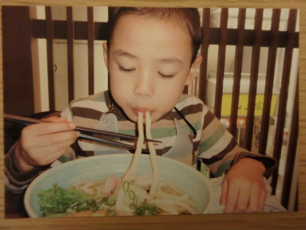 私と息子は、うどん屋さんで昼食をとっていました。そのとき、あと一本、うどんの切れ端が残っている器を、店員さんが下げようとしました。息子は”まだ、この一本を食べたいのだ!器を下げないでくれ!”という状況に追い込まれました。そして「まだ、食べる!」と叫んだのです。
