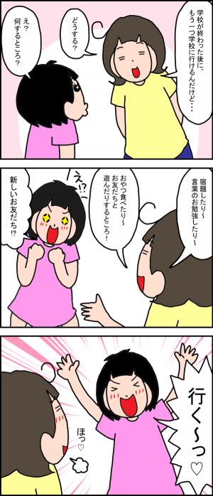 私たちが見学に行った時、部屋には4、5人の子どもたちがいました。学年はバラバラでした。私はドキドキでしたが、娘はわくわくした表情で教室の中に入り…