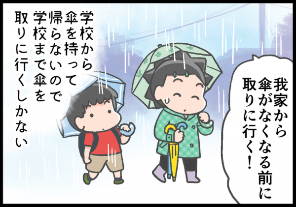そのため、梅雨や春雨、秋雨の時期は学校に傘がたまり、家の傘がなくなります。何度言ってもできないのが特性ですから、仕方なく学校に息子を迎えに行くついでに傘を取りに行くことで問題を解決していました。