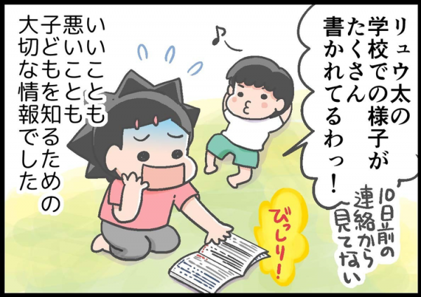 先生から伝えられることの9割は耳が痛いことばかりですが、家にいるときの息子と集団生活の中での息子は違う、いいことも悪いこともすべて含めて息子を知るために先生との情報交換は必要なんだ…と思うことにしました。