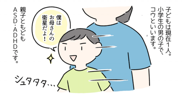 私はASD(自閉スペクトラム症)・ADHD(注意欠陥・多動性障害)です。息子のコウと夫の3人で暮らしています。コウも私と同じくASD・ADHDで、ストラテラを服用しています。
