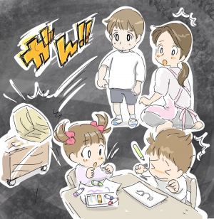 新しい先生や新しい環境のなか、ミミはおもちゃを投げることが増えました。家でも園でも投げてしまうので、その都度「おもちゃがこわれる、おもちゃがかわいそうだよ」と伝えました。