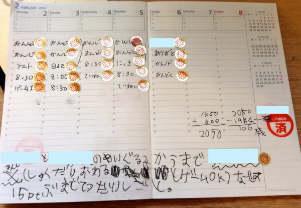 子どもの望ましい行動に対して、ポイントやシールを与える方法は「トークン・エコノミー」といって、発達障害のある子の子育てに有効な方法のようですが、うちではグレーゾーンの次男や長女にも、すっかり定着しています。