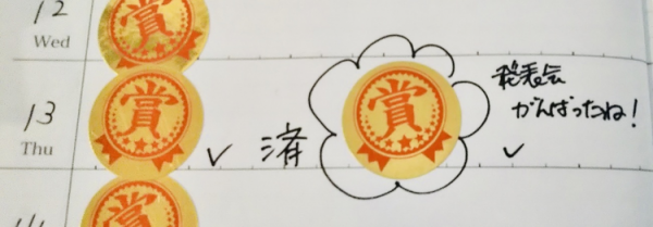本人にとって登校がしんどい時期(新学年や行事の前後、学期の終わりなど)は、「学校に行って帰ってきた」だけでも特別加算。【目標達成ポイント】