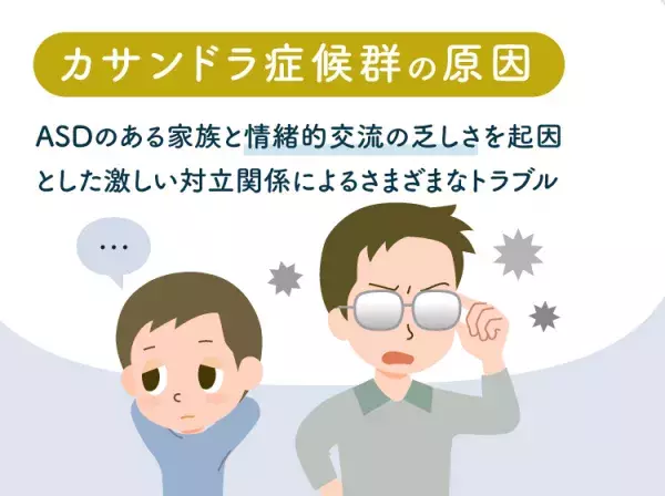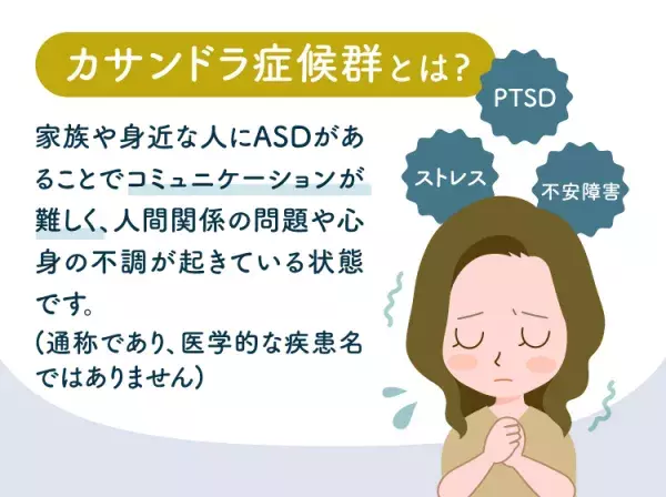 カサンドラ症候群とは、家族や友人などの身近な人に自閉スペクトラム症(ASD)があることでコミュニケーションが難しく、対立や人間関係での満足感の低下、心的ストレスから不安障害や抑うつ状態に陥っている、PTSD(心的外傷後ストレス障害)などの心身症状が起きている状態を指す言葉です。