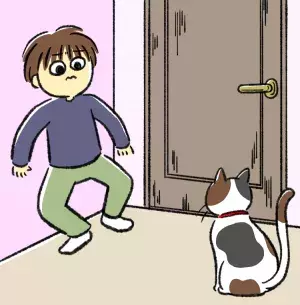 息子は(あ、猫がいる)と気づいたら、さっとリビングのドアを開けます。すると、なぜか猫がドアの方へ吸い込まれるように進んでしまい、そのまま部屋を出ていくのです。猫が吸い込まれない場合は、息子が猫を誘導するような動きを見せて、猫にご退室いただいています。