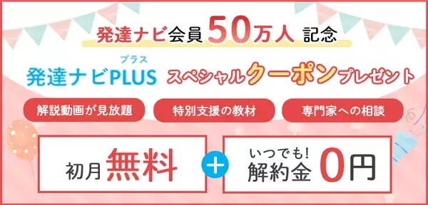 今回、累計会員が50万人を達成したことを記念し、この「発達ナビPLUS」をお得に利用できるスペシャルキャンペーンを企画しました。