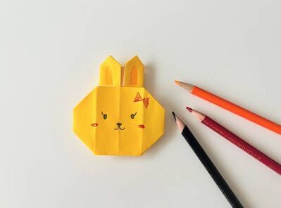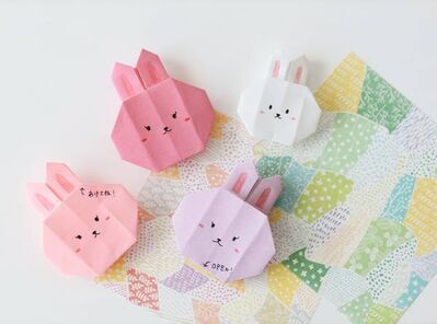 ピンクや白などの折り紙を使って、耳がチャームポイントのウサギを折ろう♪ メッセージは折る前に裏面の白い部分に書いてね。