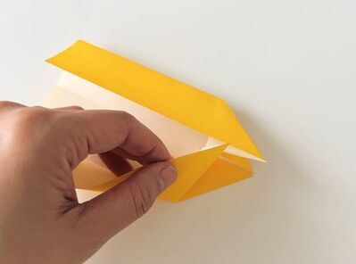 ④③で折った部分を開き、真ん中の折れ線を中心に折る。
