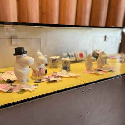 一階はトーベ・ヤンソンに関する資料展示コーナーがあり、可愛いグッズや歴史を知るプロジェクターがあります。