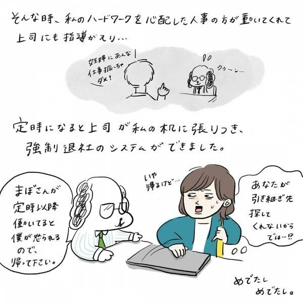 産休に入る直前までなかなか業務の引き継ぎ先が決まらず、夜遅くまでハードに働いていたこの頃。「若手社員のために、妊娠してもこの仕事を続けられる姿を見せねば!!」と頑張っていましたが、