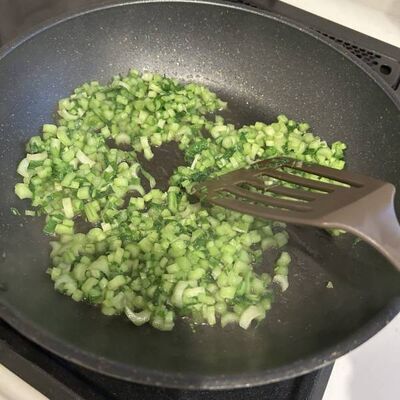 そしてフライパンにごま油を。量を記載してないのですが目分量なのと、材料の量やお好みで調節してください。後から足すのも大丈夫です♀️