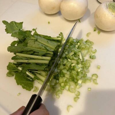 かぶの葉を細かく切ります。ご飯に乗せたりするので