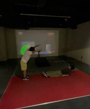 こちらはARボルダリングスポーツで、ボルダリングをしながらエアホッケーをするものです!