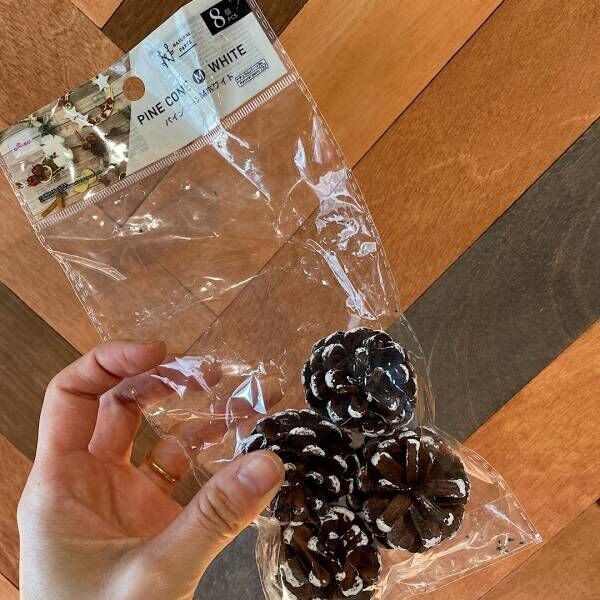 今回は100円均一でリボンと松ぼっくりを購入しました。