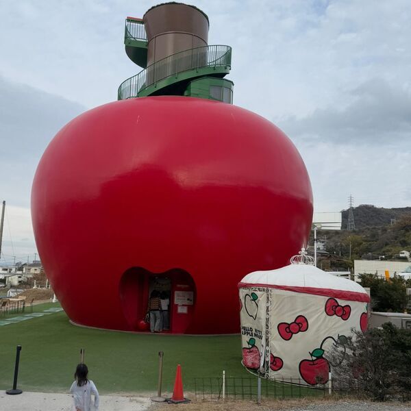 「リンゴの形をした最大の建物」「キャラクターの形をした最大の屋根」という2つのギネス世界記録認定だそうです!