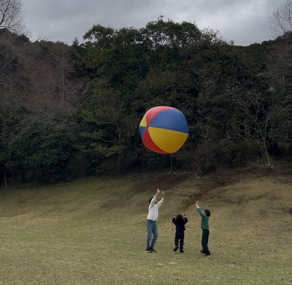 私たちのお目当てはこの巨大なボールでした!膨らますのに少し時間がかかりましたがスタッフさんにお願いして用意してもらいました。