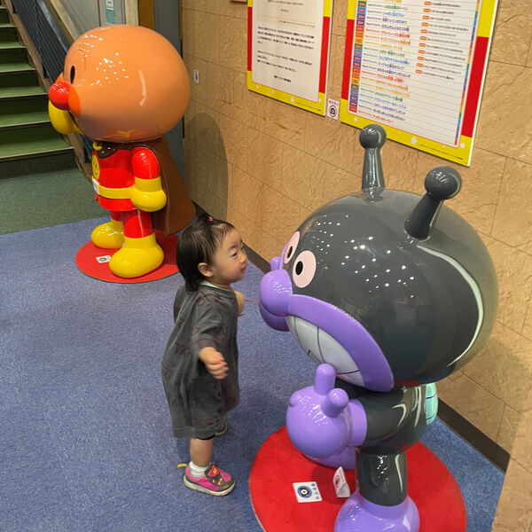 まずは入り口にアンパンマンとバイキンマンの等身大?像がこれには娘も大興奮!