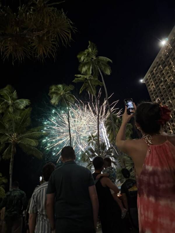 宿泊していたオーシャンタワーからもよく見え、夜空に広がる色とりどりの光に、旅の思い出がギュッと詰め込まれているようで、全員が見入ってしまいました。