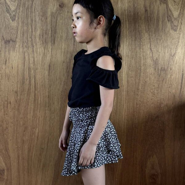 肩出しのトップスに合う、清涼感もある半ズボンとかないかなぁと調べていたら、まさにぴったり可愛いスコートをzara kidsで見つけたのでシェアさせて下さい◎