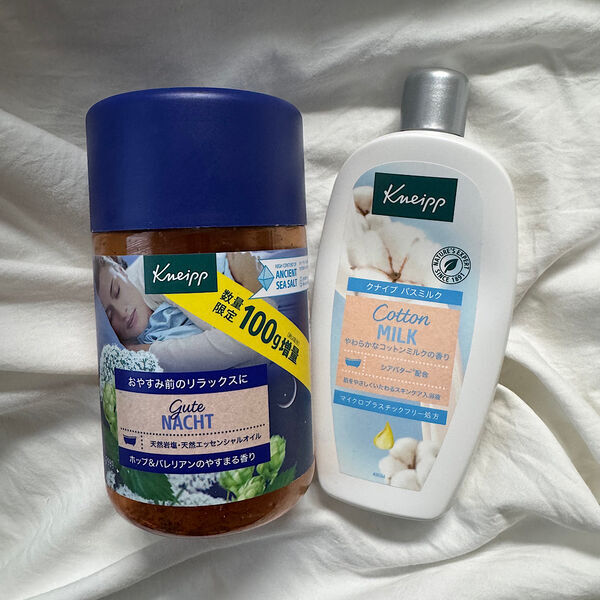 我が家はクナイプの入浴剤が大好きなのでバスミルク&泡風呂用とバスソルトを常備しているのですが、今回のウォーターミント&ローズマリーの香りがとても気に入ったので我が家の常備バスアイテムに仲間入りです♪