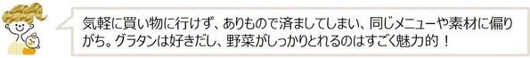 ・冷凍食品だから時短で用意できるのと、野菜などの具材がしっかり入っていて一品で満足できそうなメニューがあるのもうれしい。