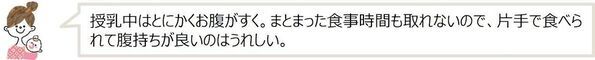 ・産後なかなか体形が戻らないのが悩み。でも、授乳中はお腹が空くのでつい間食を食べちゃうんです。