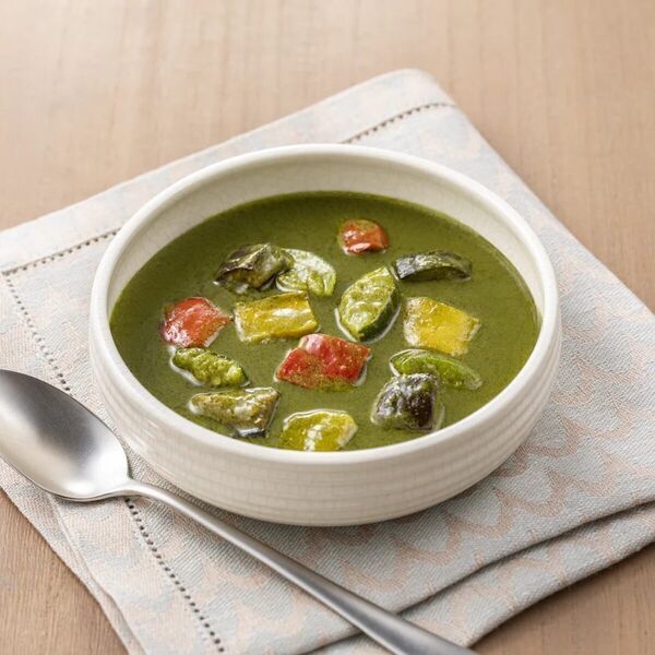 レモングラスやクミン、ガランガルなどのスパイスとハーブの芳醇な香りが楽しめる本格的な一品。4種のグリル野菜をごろっと入れ、食べ応えのある商品に仕上げました。
