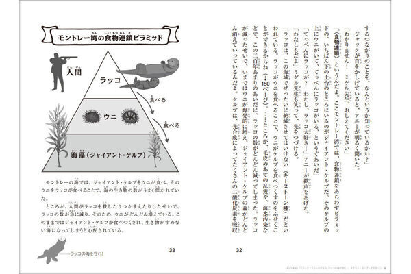 最新巻は、「ラッコ」がテーマ。世界中の人々に愛されている動物ですが、実は絶滅の危機に瀕しています。同書では、ラッコがくらす美しい海・カリフォルニア州モントレー湾の豊かさを知り、生態系におけるラッコの重要性がわかるように物語が進みます。
