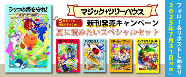 最新巻『ラッコの海を守れ!』の発売を記念して、公式Xでプレゼントキャンペーンを実施中。〈夏に読みたいスペシャルセット〉を抽選で5名にプレゼントします。