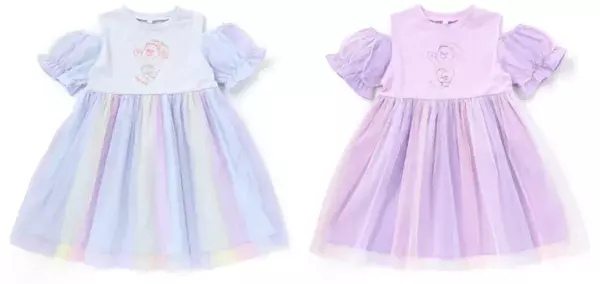 切り替え部分のチュール使いや肩のフリルなど、子どもたちの好きがとことん詰まった可愛いアイテム。