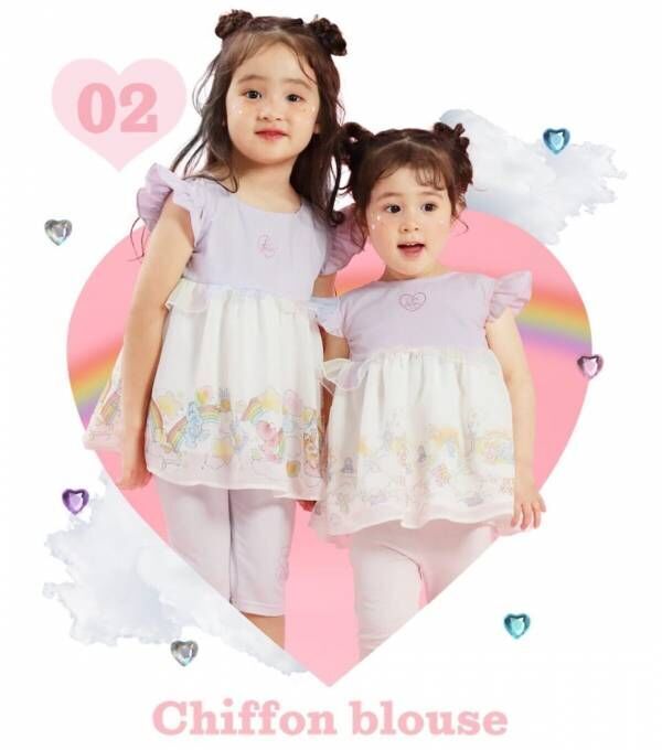 ドリーミーなケアベアを裾にプリントしたシフォンブラウスです。