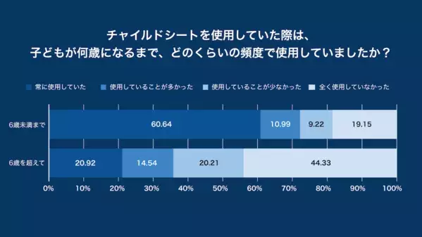 「子どもが何歳になるまで、どのくらいの頻度で使用していたか?」と聞くと、法制度上の使用義務である「6歳未満まで」でも「全く使用していなかった」と回答した人が全体の19.15%でした。