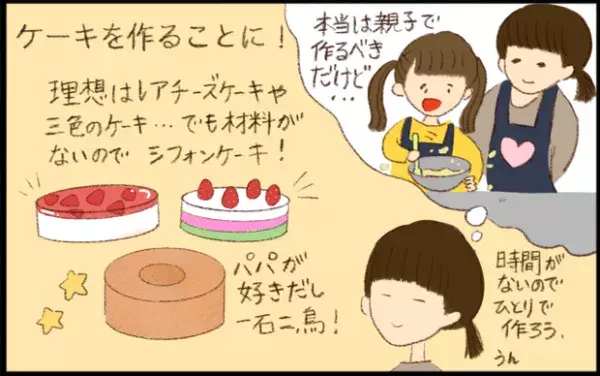 「手の込んだことはできないな…」と諦めモードでしたが、今年はしーちゃんの初節句です。3姉妹揃った初めてのひな祭りは何か思い出に残ることがしたいと思い、ケーキを作ることにしました。