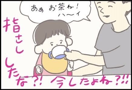 第二子・ねむちゃんが生後11ヶ月の頃、まだ「指さし」をしていないことに気がついたつぶみさん。そんなママの心配をよそに、指さしをすんなりと披露するねむちゃんのエピソードでした。