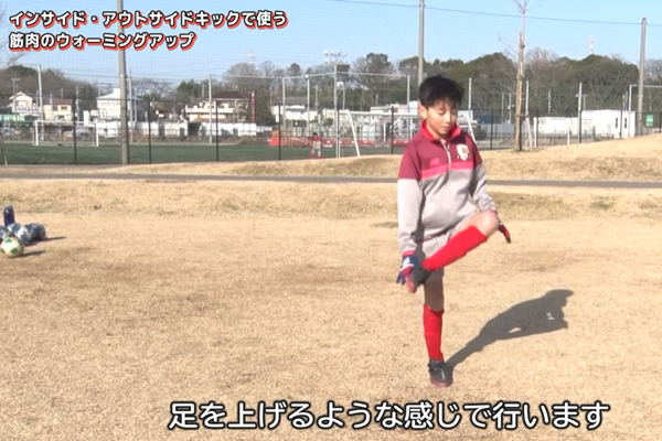 インサイドやアウトサイドキックで使う筋肉のウォーミングアップでケガ予防