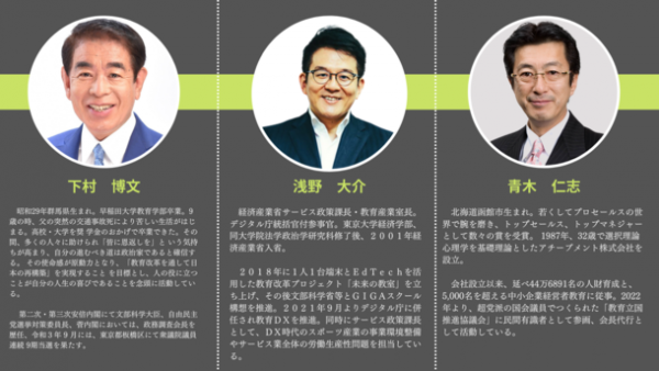 そんな中、「withコロナ、afterコロナ」の教育、とりわけ大学はどうあるべきかについて、元文部科学大臣の下村 博文衆議院議員、「GIGAスクール構想」を推進した経済産業省 教育産業室長の浅野 大介氏、そして超党派の国会議員による「教育立国推進協議会」会長代行を務めるアチーブメント株式会社の青木 仁志氏が徹底討論します。