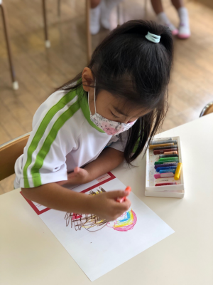 こんなケーキを届けたいなと想いながら一生懸命に描く子どもたち。